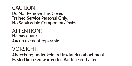 是英語/法語/德語書寫的警示内容.警示非專業技術人員,請勿擅自拆開(kāi)外殼進(jìn)行維修.